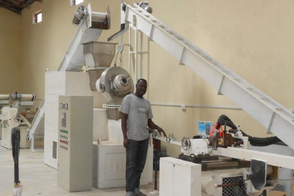 This production line is designed to produce toilet soap. Material is soap noodle (soap grains).