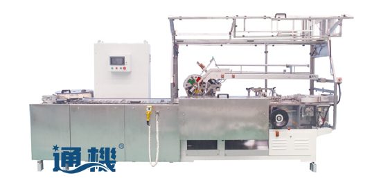 Upstream products go into the machine, and then go through the carton suction, open, product feed in, hot gluing, closing, code mechanical printing and output as finished product for case packing.