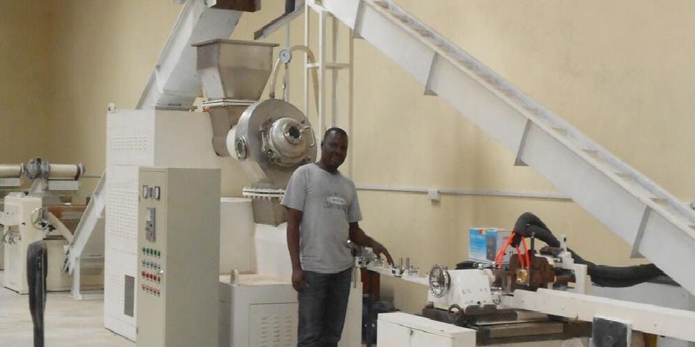 This production line is designed to produce toilet soap. Material is soap noodle (soap grains).